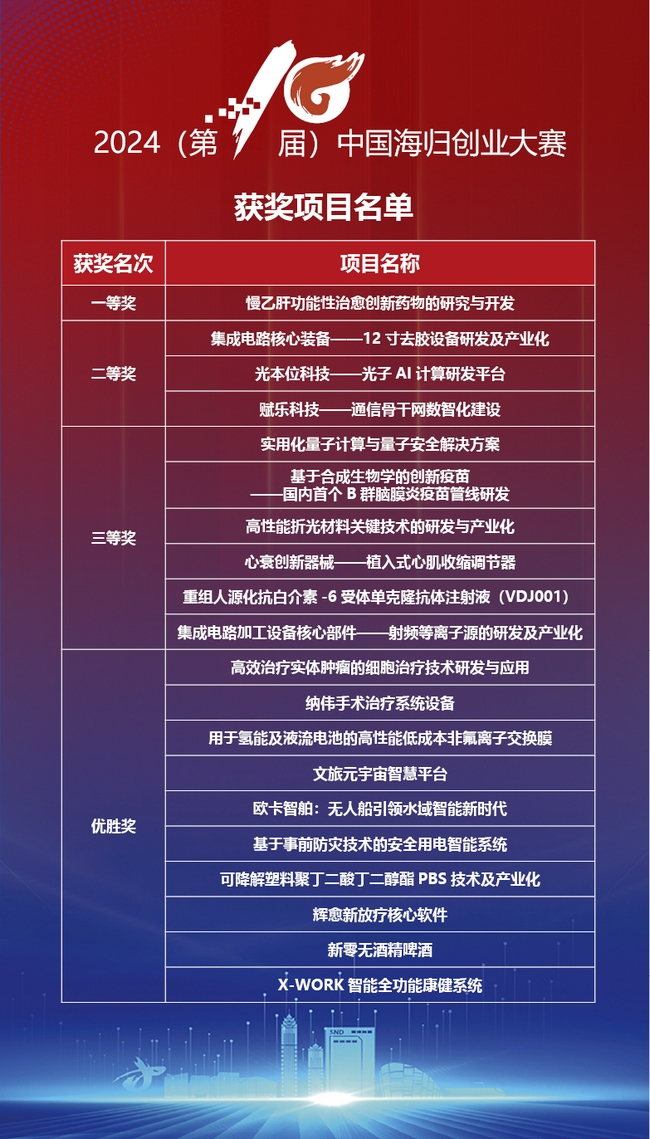 6月19日,由中國(guó)技術(shù)創(chuàng)業(yè)協(xié)會(huì)留學(xué)人員創(chuàng)業(yè)園工作委員會(huì)主辦,江蘇省高新技術(shù)創(chuàng)業(yè)服務(wù)中心、蘇州高新區(qū)管委會(huì)等單位聯(lián)合主辦的2024(第10屆)中國(guó)海歸創(chuàng)業(yè)大賽圓滿(mǎn)落下帷幕。近120支海歸創(chuàng)業(yè)團(tuán)隊(duì)匯聚蘇州高新區(qū),經(jīng)過(guò)復(fù)賽和決賽激烈角逐,西安新通藥物研究團(tuán)隊(duì)的“慢乙肝功能性治愈創(chuàng)新藥物的研究與開(kāi)發(fā)”項(xiàng)目最終奪得冠軍。